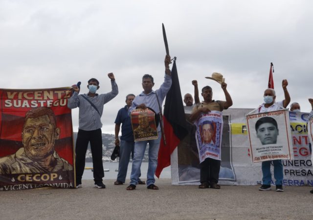 Acapulco, Guerrero, 5 de junio de 2022. A diez meses de la desaparición de Vicente Suástegui, defensor de la tierra y del río Papagayo, familiares, madres y padres de los 43 estudiantes, normalistas de Ayotzinapa y organizaciones sociales exigieron la…